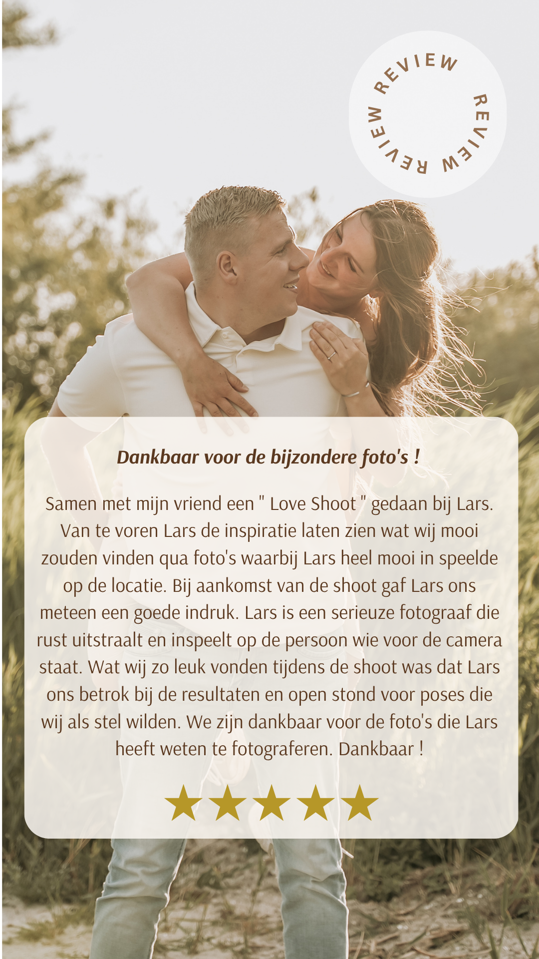 Zelf ben ik gek op fotograferen op het strand en tussen het riet. De combinatie van zand, wind, licht en natuur geeft mijn foto’s een rustgevende, dromerige uitstraling die perfect past bij mijn stijl. Het zijn plekken waar mensen zich vaak vanzelf al vrij en verbonden voelen – en dat zie je terug op beeld.
