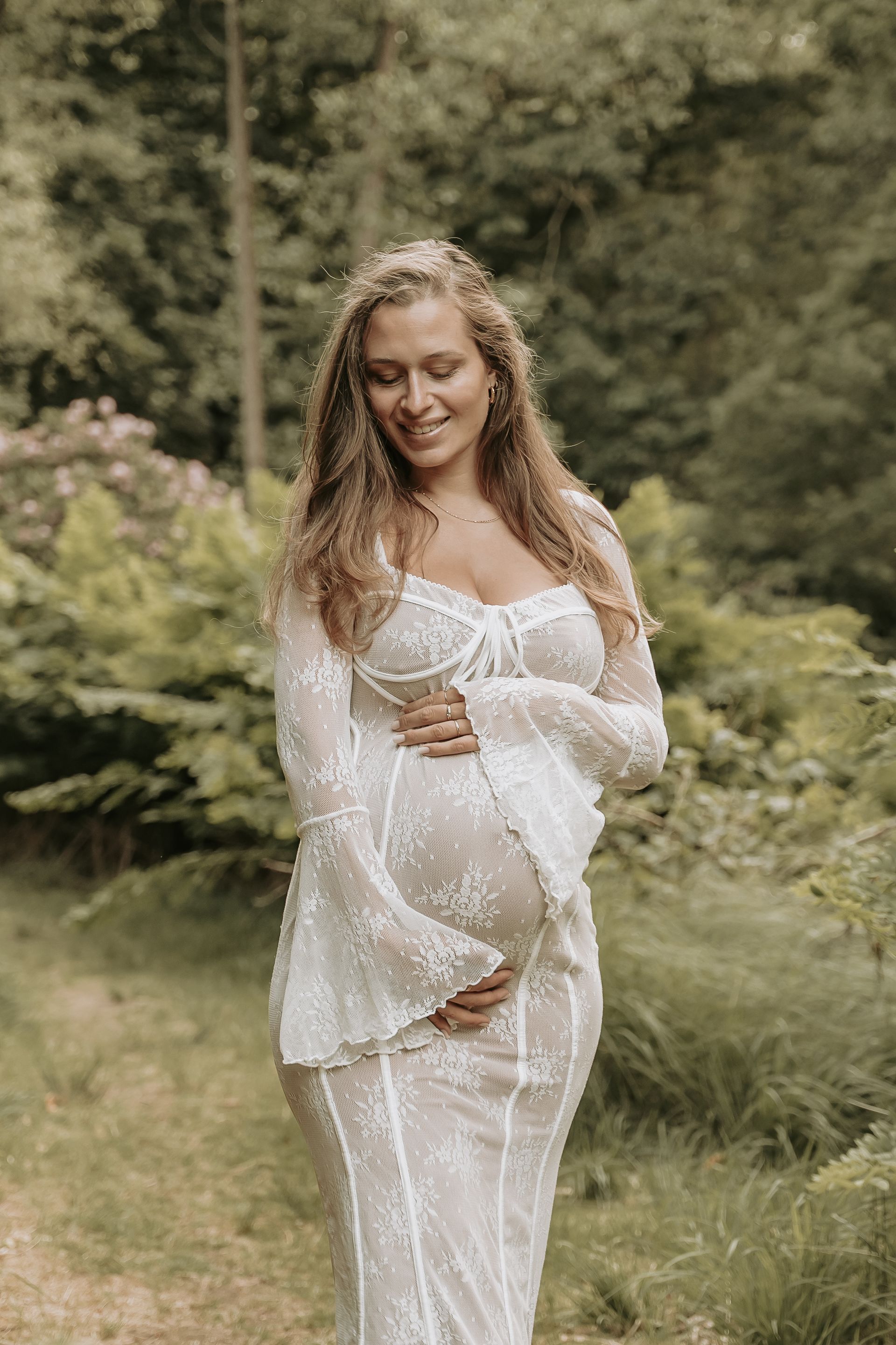Om het je makkelijk te maken, heb ik een aantal jurken die je kunt lenen tijdens de shoot. Deze jurken zijn speciaal gekozen voor zwangerschapsshoots en zorgen voor een stijlvolle en tijdloze uitstraling. Je hoeft dus niet zelf op zoek naar een perfecte outfit — ik help je daar graag bij. Samen kijken we wat het beste bij jou past, zodat jij je mooi en ontspannen voelt voor de camera.